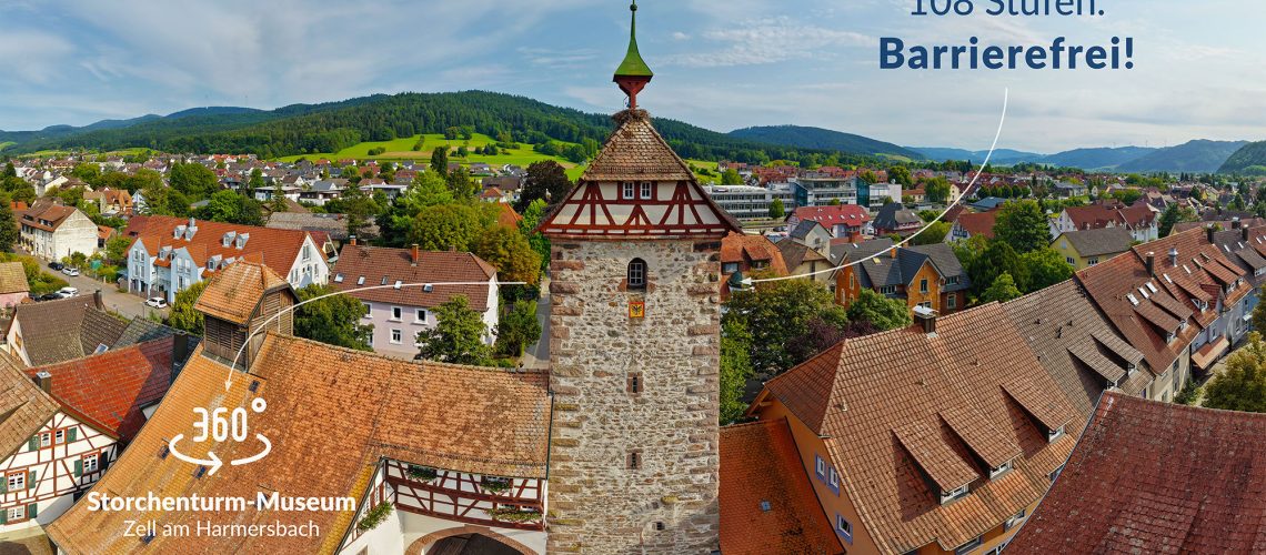 Schwerpunkt unserer Messepräsenz ist eine Vorschau auf unser aktuelles Projekt in Zell am Harmersbach: Für das dortige Storchenturm-Museum realisieren wir derzeit eine 360°-Tour, die einen barrierefreien Besuch des Storchenturms sowie digitale Infoangebote ermöglichen wird. Insbesondere Menschen mit eingeschränkter Mobilität oder Sehbeeinträchtigungen sollen damit ab der kommenden Saison auf einem virtuellen Rundgang nachempfinden können, was real nur nach dem Erklimmen von 108 Stufen über 25 Meter zu besichtigen ist.