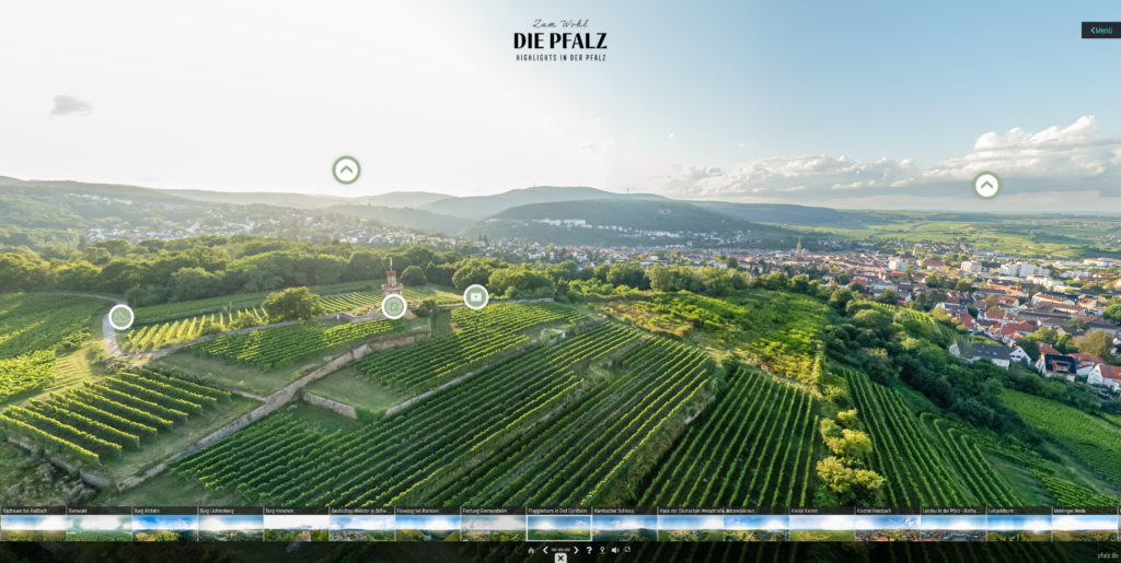 Auf der anderen Seite war genau dieser Entstehungsprozess eine spannende Zeit, weil man nach und nach sehen konnte, wie sich die verschiedenen Panoramen zu einem Rundumflug durch die Pfalz zusammensetzen und die Touren, Ausflugsziele und vieles mehr einen tatsächlichen Mehrwert für Einheimische und Gäste bietet. Es war schön zu sehen, wie aus einer Idee und dem Projektplan ein interaktives, virtuelles Erlebnis wurde.